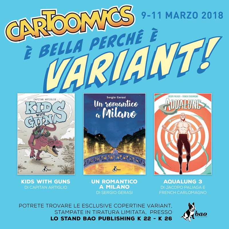 In occasione di Cartoomics 2018, la fiera in programma dal 9 all’11 marzo a Rho Fiera Milano, Bao Publishing ha annunciato sulla propria pagina Facebook di aver realizzato appositamente per l’evento le variant cover dei tre volumi che presenterà in anteprima.