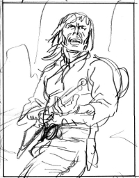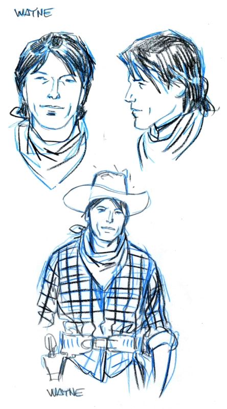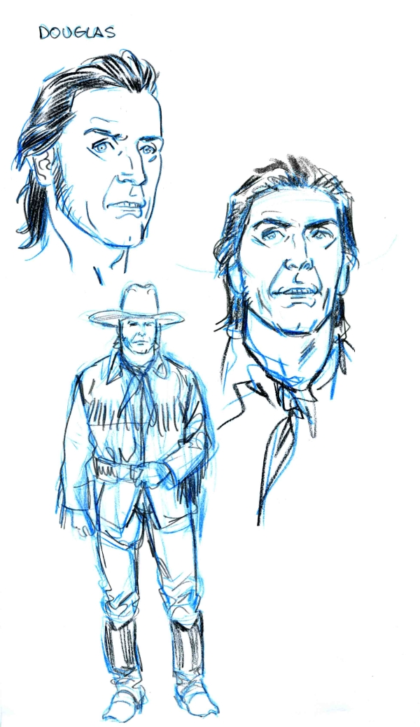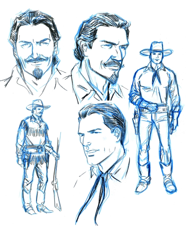 Tecnicamente, a differenza di Dylan Dog, era complicato rifarmi alla fonte d’ispirazione iniziale (che pare essere l’attore Robert Taylor, o un misto fra quest’ultimo e John Wayne) ed ho cercato di rifarmi al primo Villa, un po’ meno massiccio e squadrato di quello che disegna oggi, cercando anche di mixarlo con quello di Giovanni Ticci.