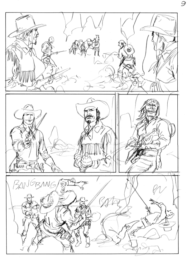 In ogni caso il West non è solo pistole e cavalli: è un fumetto in costume a tutti gli effetti; è ambientazioni, abiti, scrivanie, stufe, oggetti… tutto d’epoca. È indispensabile un’accurata documentazione; una volta acquisita, però, diventa tutto molto più facile.