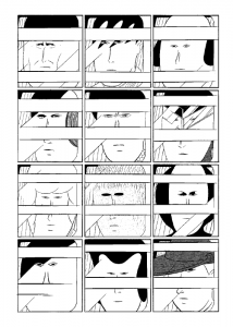 E per indicare questo movimento continuo, il fumetto di Yokoyama si attesta su un ritmo vertiginoso. Il lettore guarda attraverso una videocamera immaginaria. Ancor più immaginaria perché il montaggio è sincopato, il punto di vista cambia continuamente, il controcampo è veloce, l’obiettivo zoomma avanti e indietro fino a comprendere campi lunghissimi.
