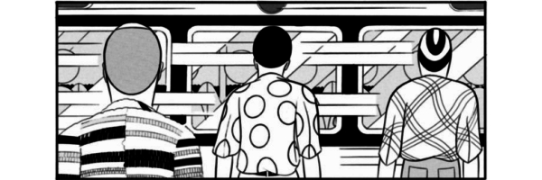 Il fumetto di Yokoyama è un susseguirsi di dettagli che colgono l’occhio ad altissima velocità: stampe di giacche e camicie; visi incrociati nei corridoi del treno; volute di fumo di sigaretta; ponti, campi, casolari intravisti dal finestrino; scrosci di pioggia che filtrano il paesaggio; il mutare della qualità della luce.