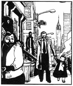 Una maestria acquisita insieme a un lavoro di ricerca continua sul segno, a caccia di una composizione (della singola vignetta o della pagina) che mette tratti o macchie nere dove sembra facciano più male, dove tu non li metteresti mai, dove non te li aspetti. Da questo punto di vista rinuncia definitivamente a essere popolare, pretendendo uno sforzo dal lettore che forse oggi i lettori non fanno più. Se ci hanno insegnato che nella composizione visiva, ancorché in modo non banale, comunque si persegue un equilibrio, Muñoz sembra negarlo, camminando sul filo senza cadere ma sbilanciandosi continuamente.