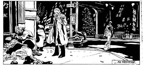 E dopo Sinner le sue deviazioni, Nel bar e Sophie, quindi Sudor Sudaca, Giochi di Luce, Billie Holiday… il tratto di Josè Muñoz sembra involvere (se lo si considera “solo” disegno e non parte di un meccanismo narrativo complesso), mentre persegue con Sampayo una narrazione sempre meno cinematografica e più fumettistica(anche se l’amore per il cinema, come quello per la musica, rimarranno a caratterizzare la loro opera).
