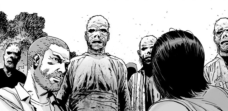 È sorprendente come, a fronte di una continuity così lunga, Robert Kirkman riesca a non declassare l’attenzione del lettore, assuefattosi alle connotazioni di efferatezza e imponderabilità che, fin dagli esordi, hanno reso popolare The Walking Dead. Il ripetuto gioco di cliffhanger, campi medi e splash page consente a Charlie Adlard di esprimere in souplesse le sue doti espressive, veicolate da un tratto essenziale ma dinamico, in grado di regalare momenti visivi destinati a rimanere impressi nella memoria.