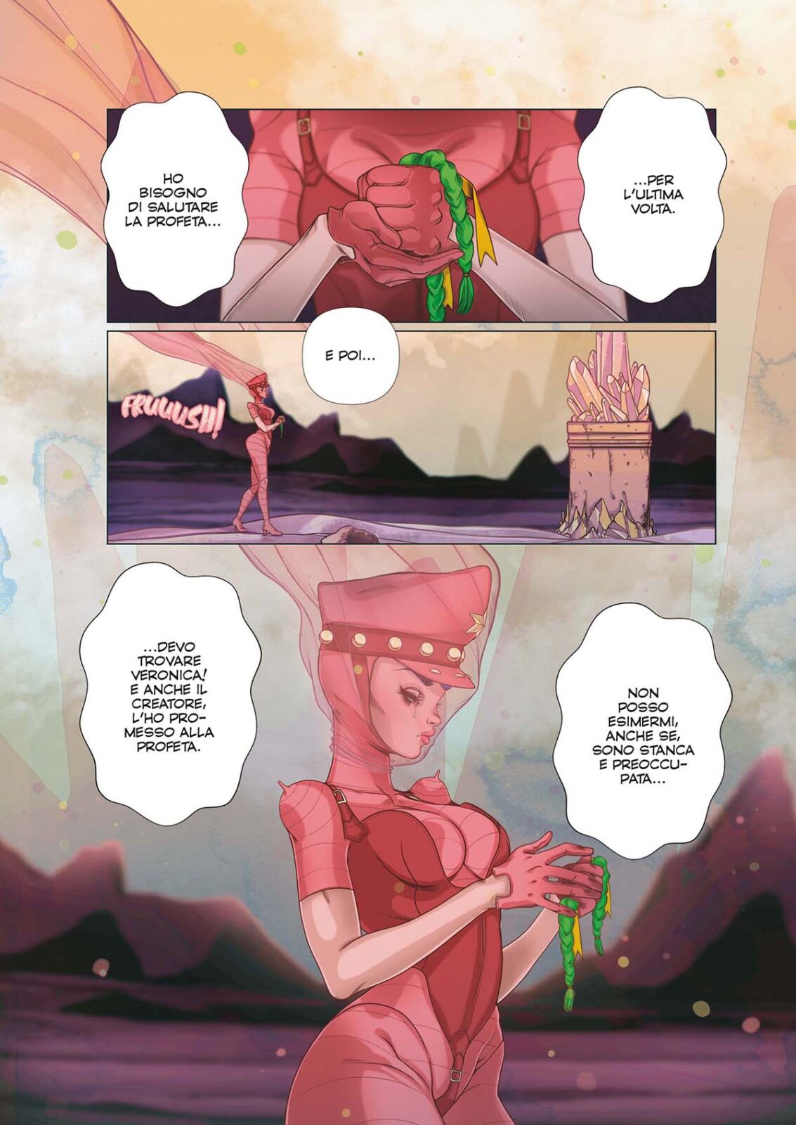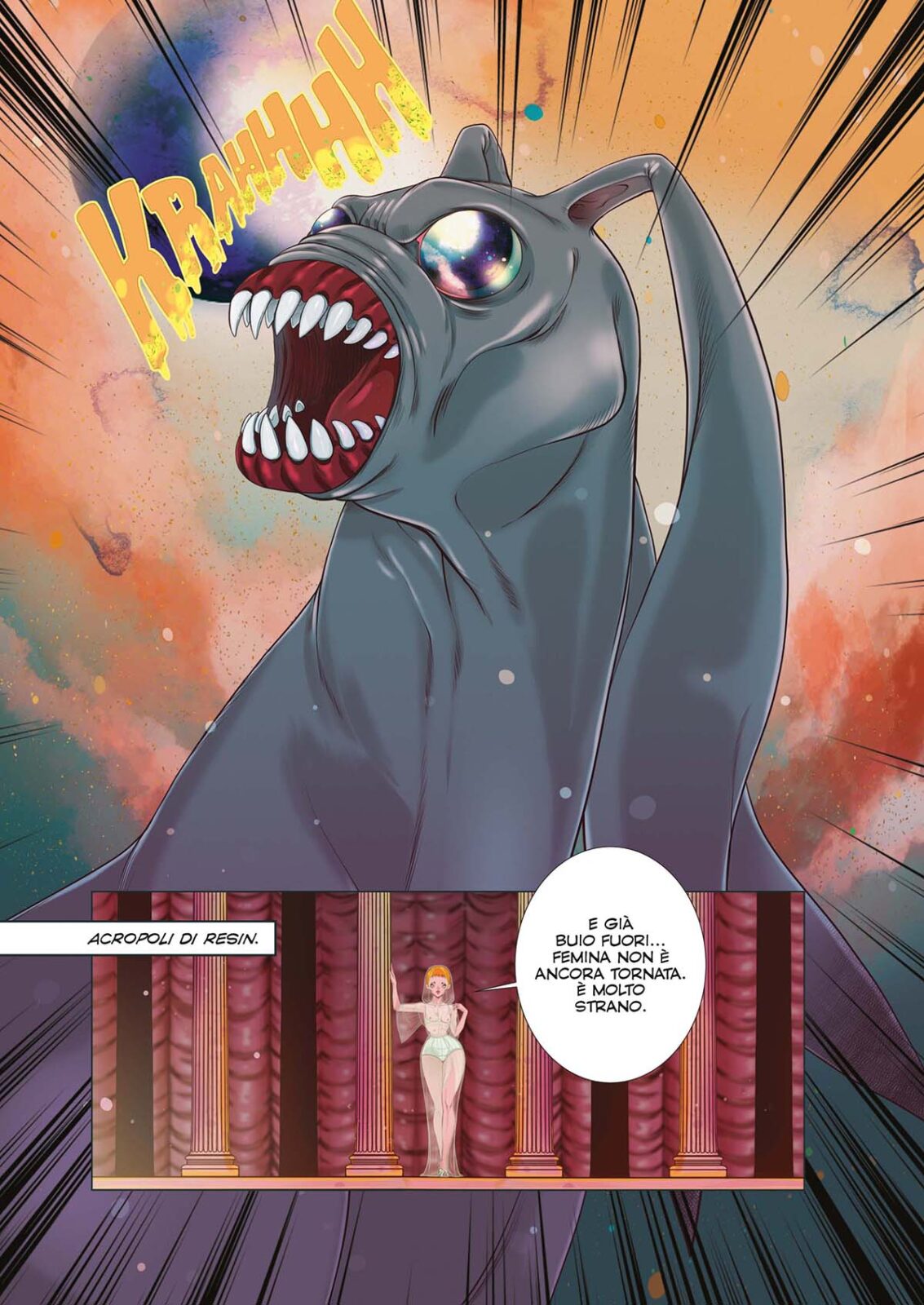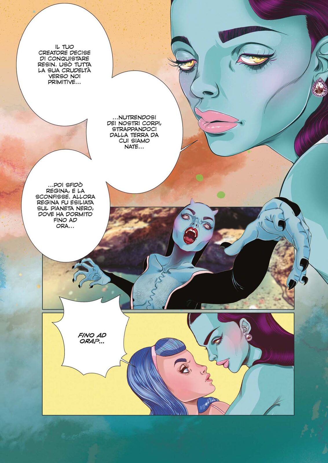 Veronica, allontanatasi da Resin, scopre un luogo inesplorato del Pianeta dove si imbatte in feroci animali che non aveva mai visto. Intanto all’Acropoli vige il lutto per la Somma Profeta di Resin, morta sotto il crollo del monte Janka. Mentre Femina onora la tomba della Profeta, farà la conoscenza di uno strano animale col quale partirà alla ricerca di Veronica verso la parte inesplorata di Resin, dove incontrerà le Primitive, una tribù autoctona…Ma chi sono in realtà la Primitive? Cosa sveleranno a Femina riguardo la nascita delle Amazzoni e del loro scomparso Creatore? Il viaggio di Femina continua alla ricerca della verità.