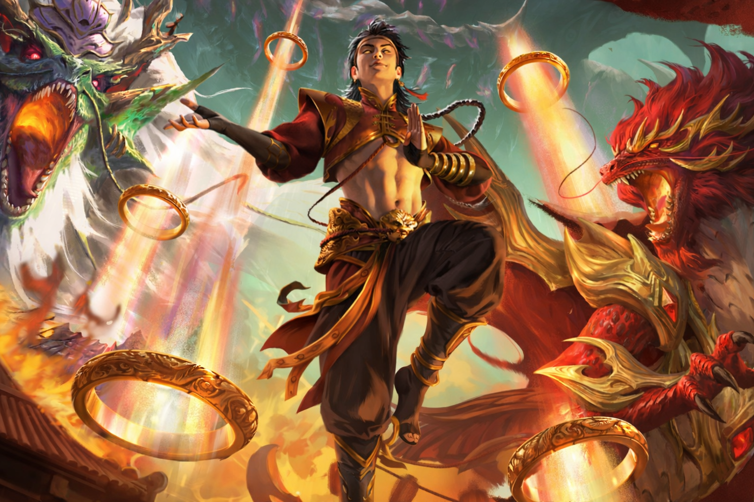 Cominciamo col descriverne bene il comportamento: all’inizio della partita si ottiene la carta I dieci anelli che ha il seguente testo: Alla scoperta: +1 Forza a una delle altre carte che possiedi qui.