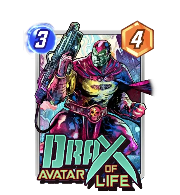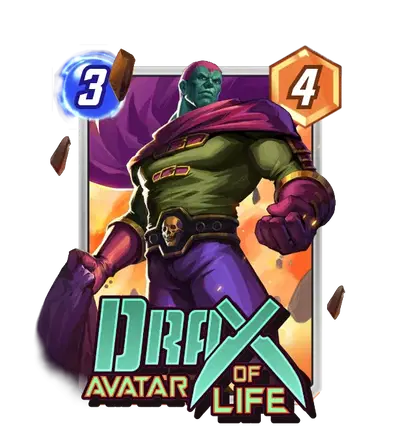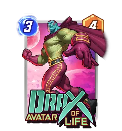 secondo cui in caso l’avversario giochi più carte con più forza in altre location, Drax si sposterà in una a caso. Inoltre, dovremo considerare il fatto che già dopo il primo buffBuff Un potenziamento che viene applicato a una carta in seguito a una Patch o un OTA. Può essere una diminuzione di costo, un aumento di forza o una modifica all'abilità. la carta diventa una 7 forza, quindi è probabile che arrivi a 10 alla fine della partita. Questo senza contare eventuali ulteriori buff che possiamo darle con carte in curva come America Chavez e Forge, o scombando con i re della passata season Maverick e Shou-Lao, magari prenderà meno forza ma potrebbe diventare una big capace di spostarsi alla bisogna sui campi… da provare, insomma.